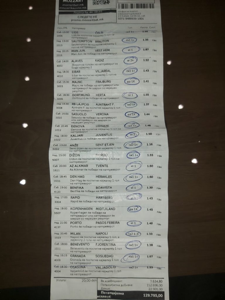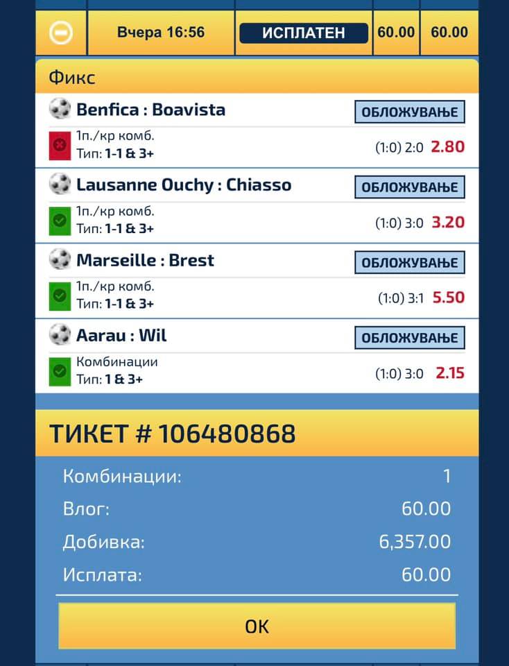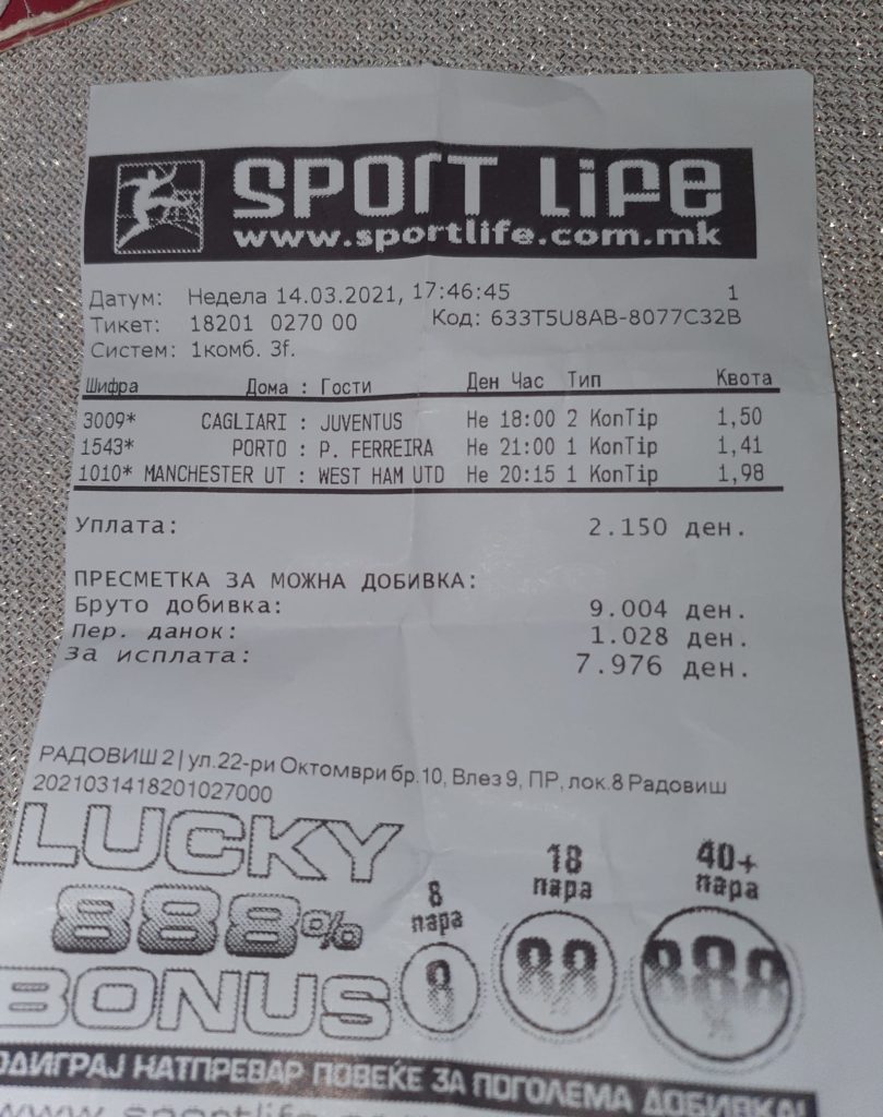 Овде имаме храбар махер. Играчот успеал да избере три вистински натпревари и да ги уплати за солидна сума. За убаво да се трошат!