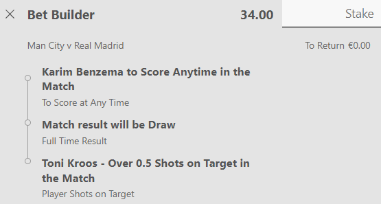 Првиот дуел ќе биде вистински спектакл и силата ќе ја мерат Манчестер Сити и Реал Мадрид. Овој натпревар ќе биде интересен, но ние решивме да го направиме уште поинтересен така што составивме специјал тикет во Bet365, поточно тикет со повеќе типови и тоа само за овој натпревар.
