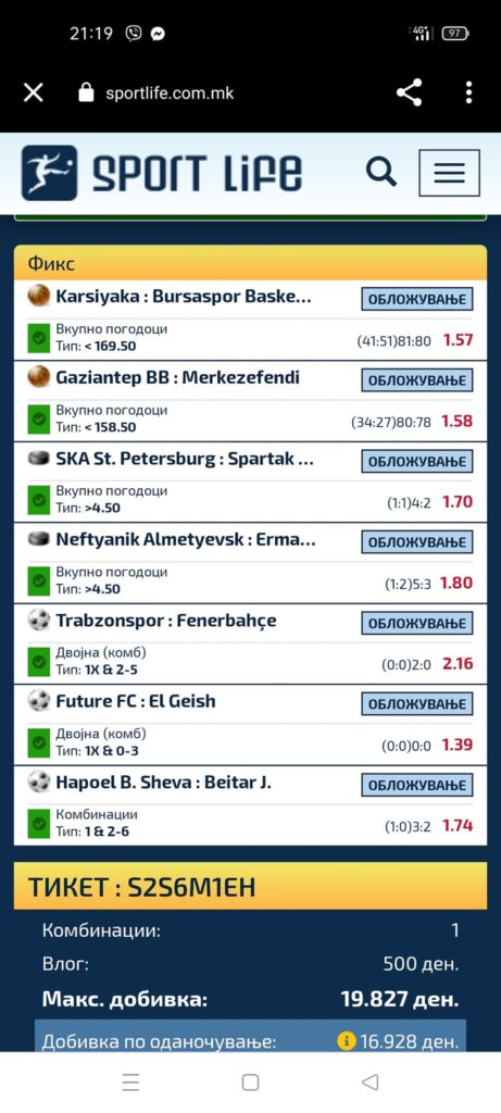 Браво мајсторе. Изиграни натпревари од кошарка, хокеј и фудбал. Направена е вистинска комбинација и за уплата од 500 денари овој играч си доби скоро 20.000 денари. За убаво да се трошат!