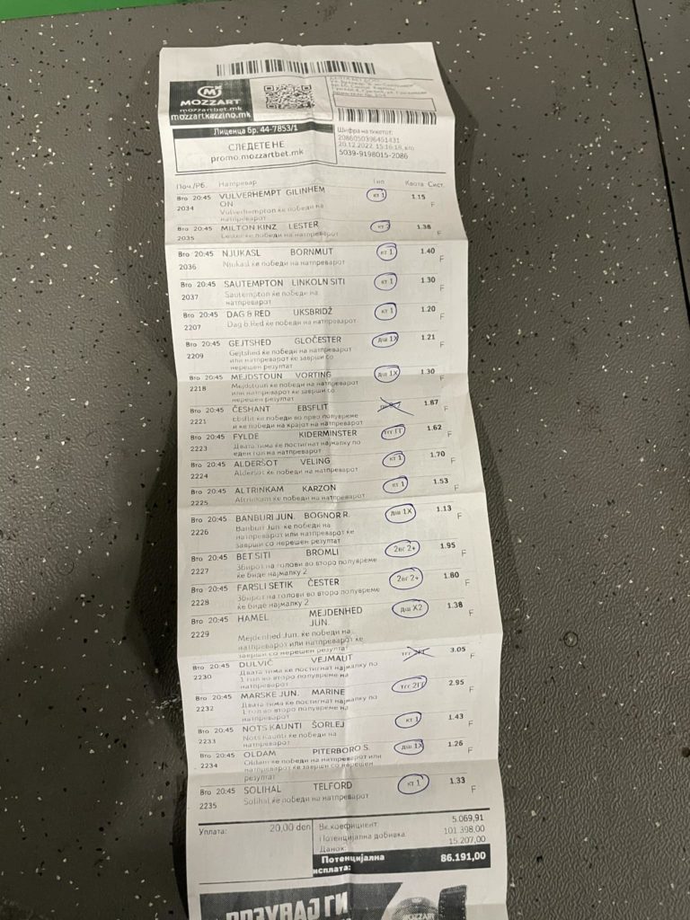 Толку блиску, а сепак далеку. Овој играч изиграл 20 натпревари, а погоди дури 18. Вистинска штета е што не успеа со 20 денари да си добие скоро 86.000 денари.