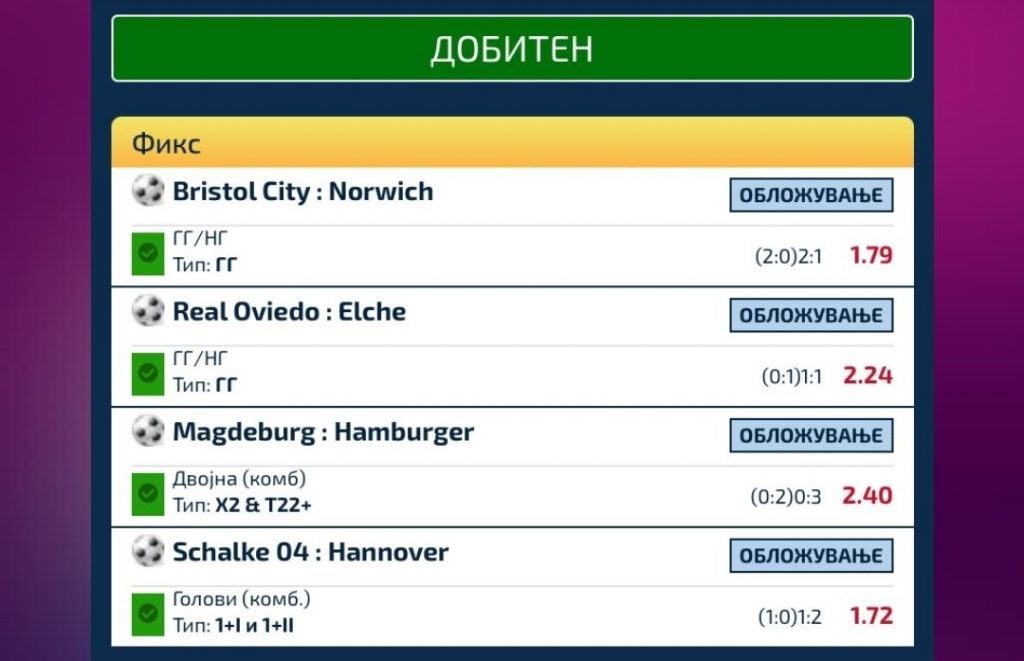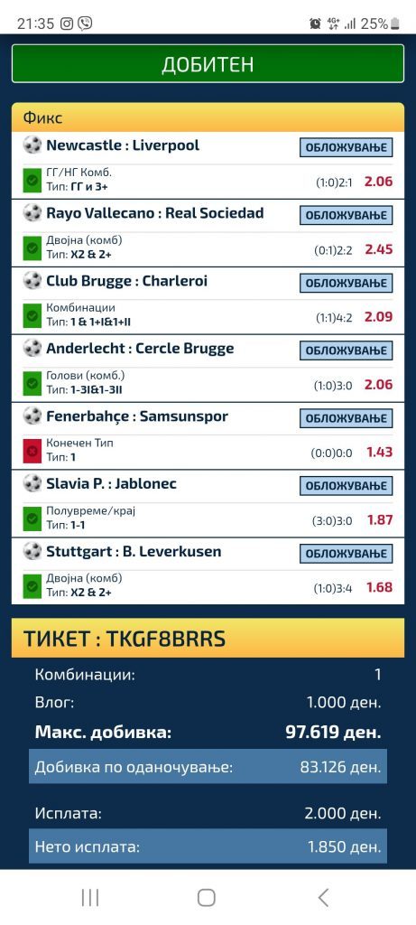 Браво мајсторе. Комбинирани игри и одлични квоти. Овде не ни е позната уплатата и исплатата, но колку и да се за убаво да се трошат!