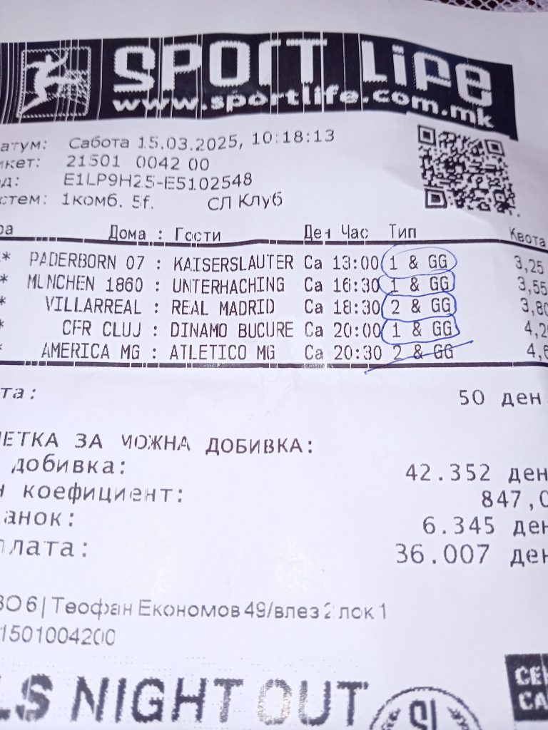 9 натпревари внимателно избрани и одлично анализирани. Цел труд на овој играч „дебело“ му се исплати, поточно со уплата од 300 денари си доби скоро 3000 евра. Секоја чест мајсторе!