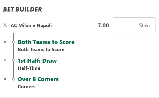 Милан досега собраа 9 бода и се наоѓаат на горниот дел на табелата, додека Наполи има 100% позитивен учинок и од 4 изиграни натпревари запишаа четири победи.