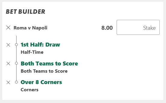 Рома досега собра 27 бода, а нивниот учинок е 9 победи, 0 реми и 3 порази, а тимот на Наполи има 2 бода помалку, поточно 25 кои ги имаат освоено преку 8 победи, 1 реми и 3 порази.