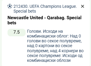 Вкупниот коефициент е 7.50, а изборот е: