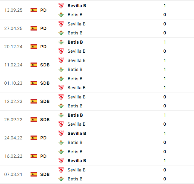 Севиља Б е на 19-то место со 21 бод и учинок од 4 победи, 9 реми и 13 порази.