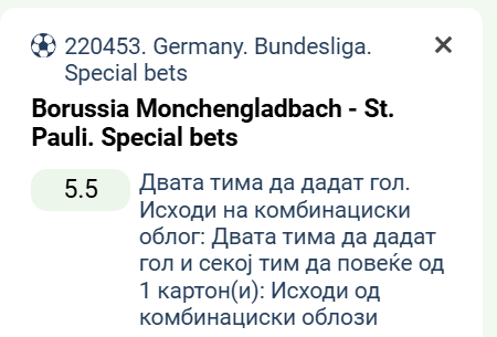 Специјал тикет за натпреварот Менхенгладбах – Ст. Паули