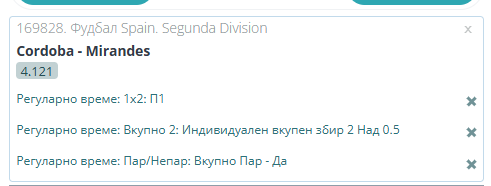 Специјал тикет за натпреварот Кордоба – Мирандес