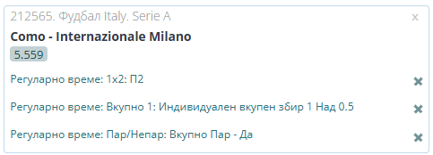 Специјал тикет за натпреварот Комо – Интер