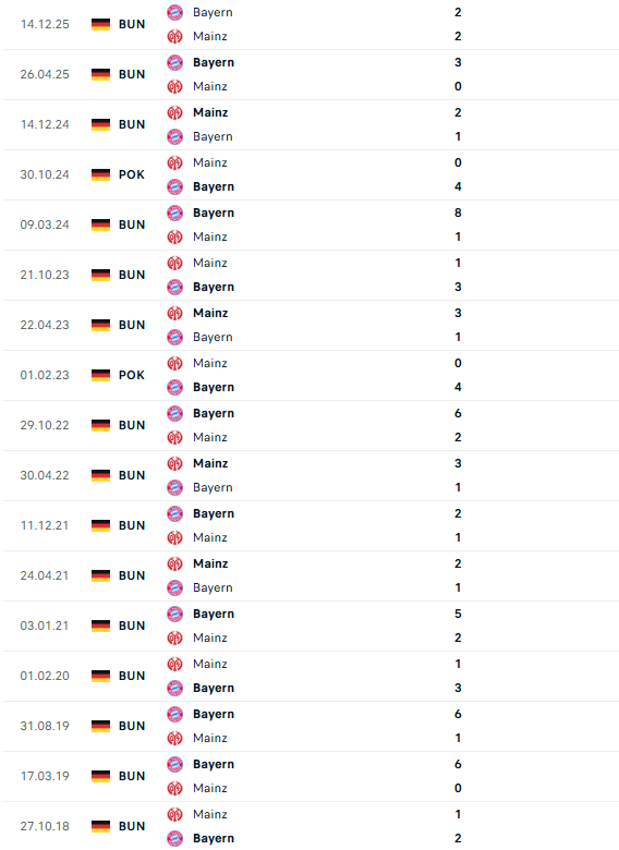 Денес од 15:30 во рамките на германската Бундеслига се сретнуваат екипите на Мајнц и Баерн Минхен.