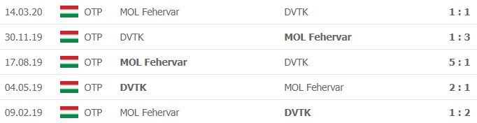 Фехервар досега има освоено вкупно 16 бода преку 4 победи, 4 реми и 1 пораз.